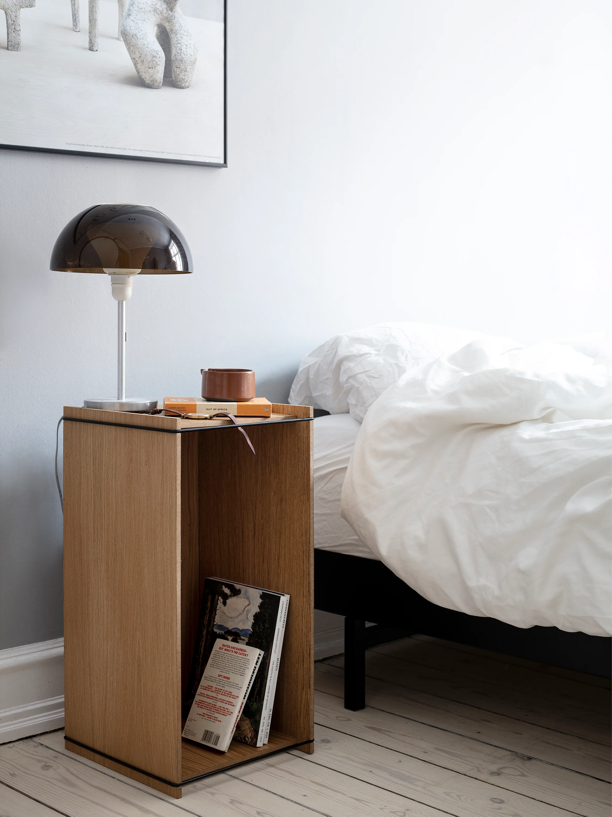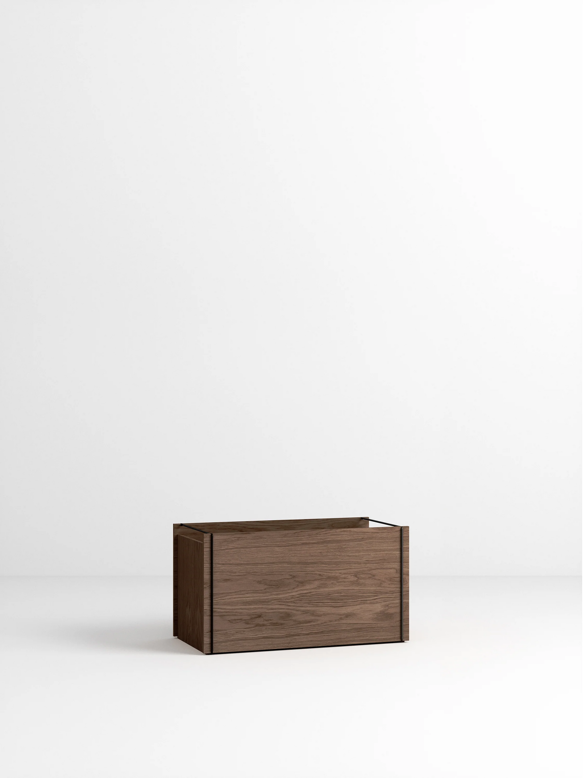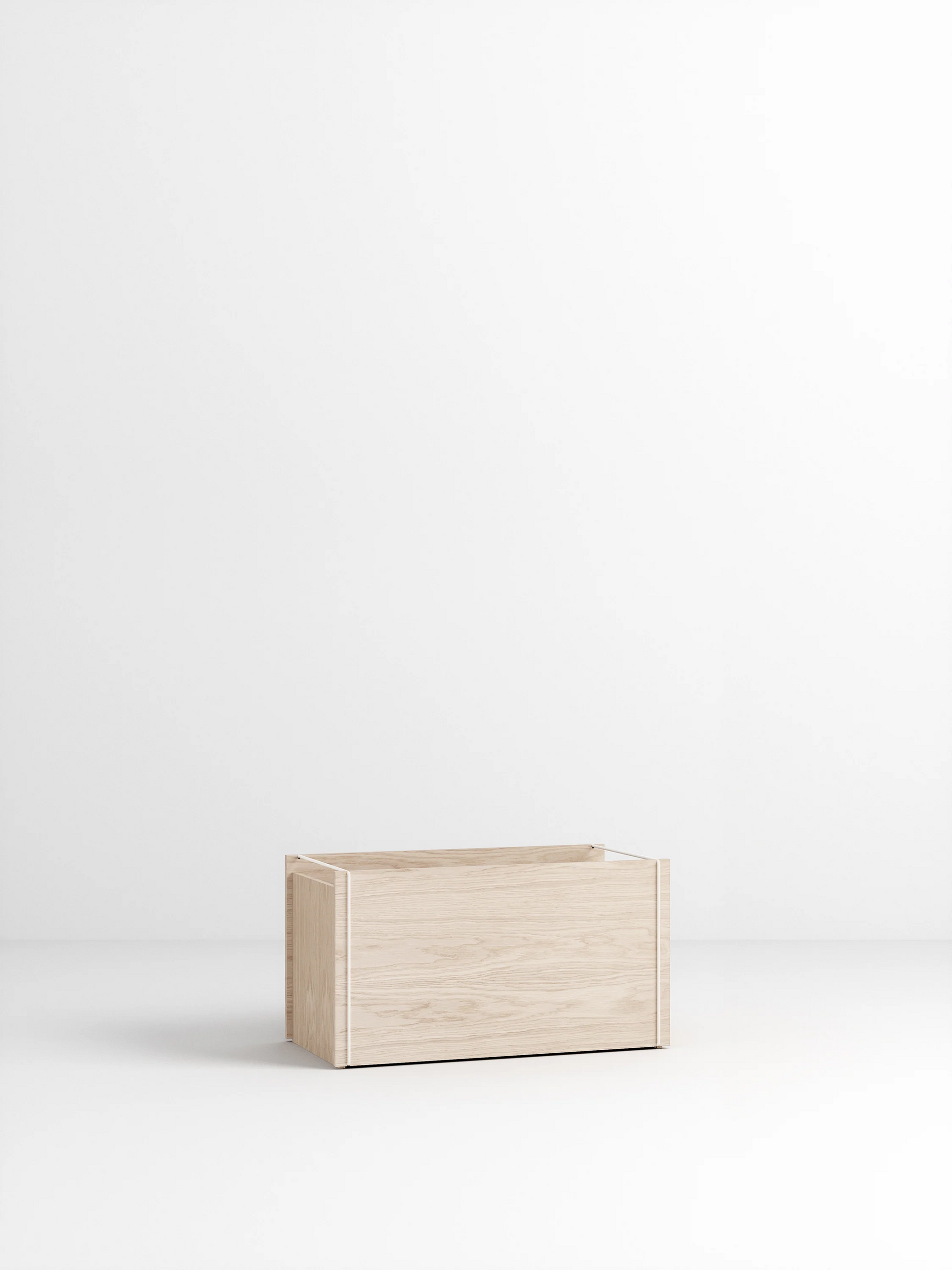 フラットパックで届き、必要に応じて組み立てや分解が可能です。2本の金属フレームがボックスを固定し、持ち運び用のハンドルとしても機能します。単体で使用することも、積み重ねて使用することもできます。平置きしても、立てて置いても構いません。最大で3つのボックスを積み重ねることができます。