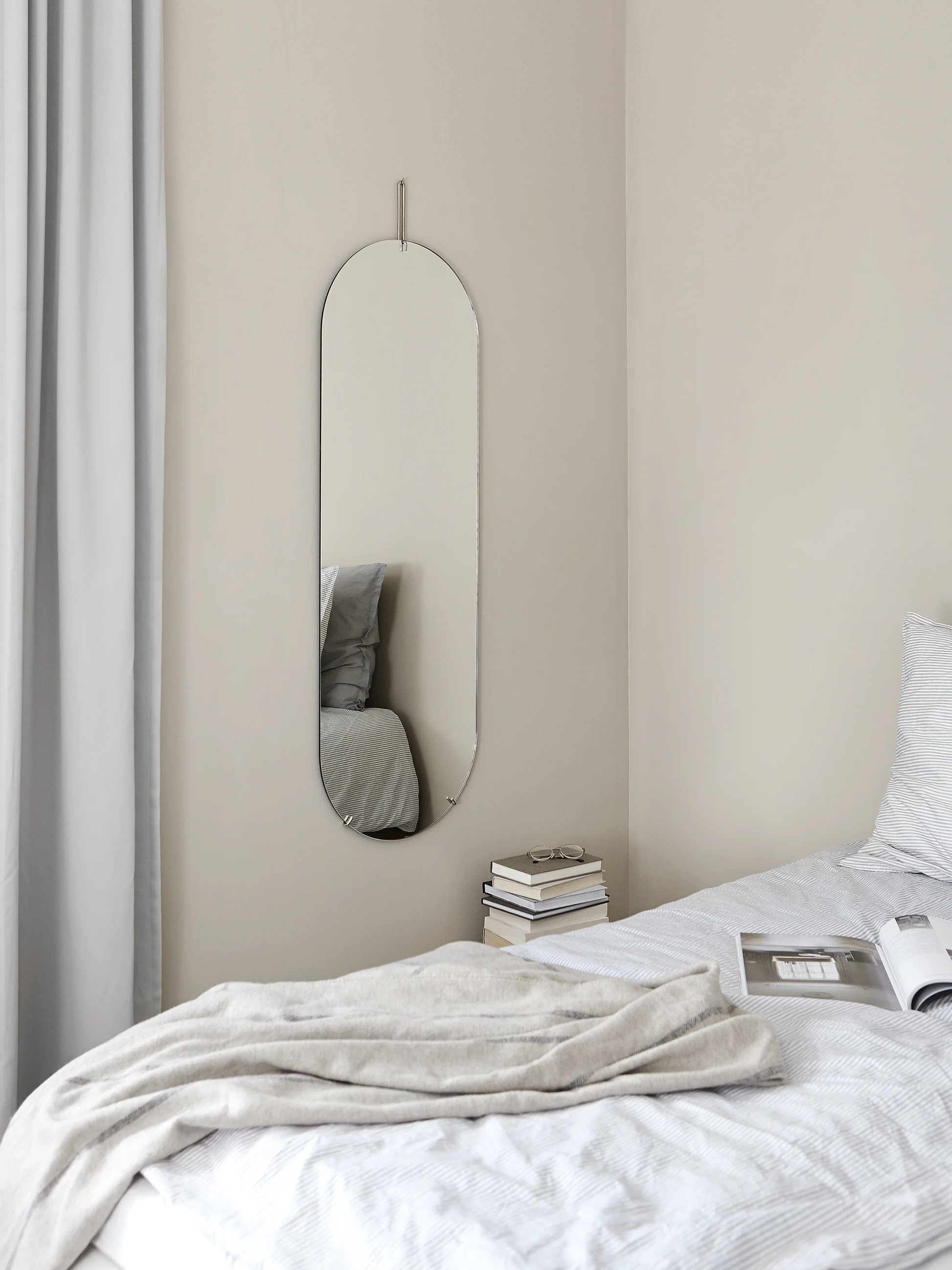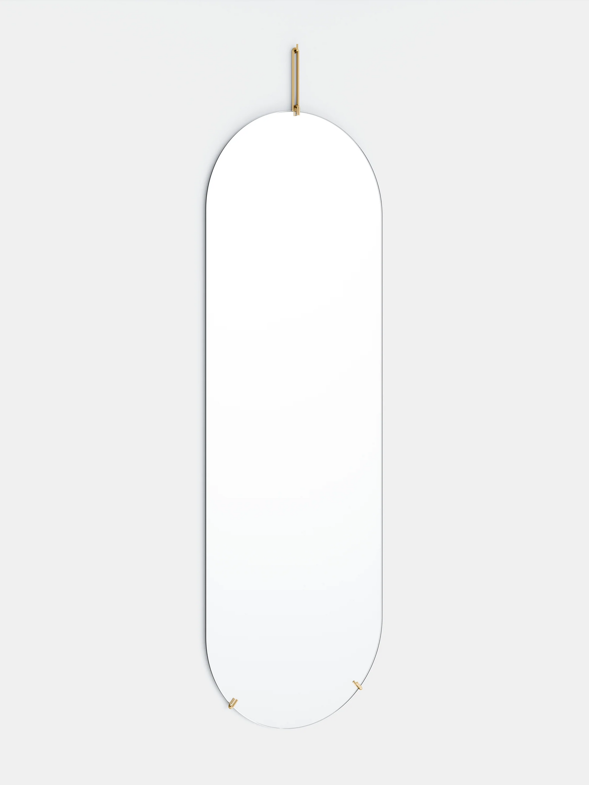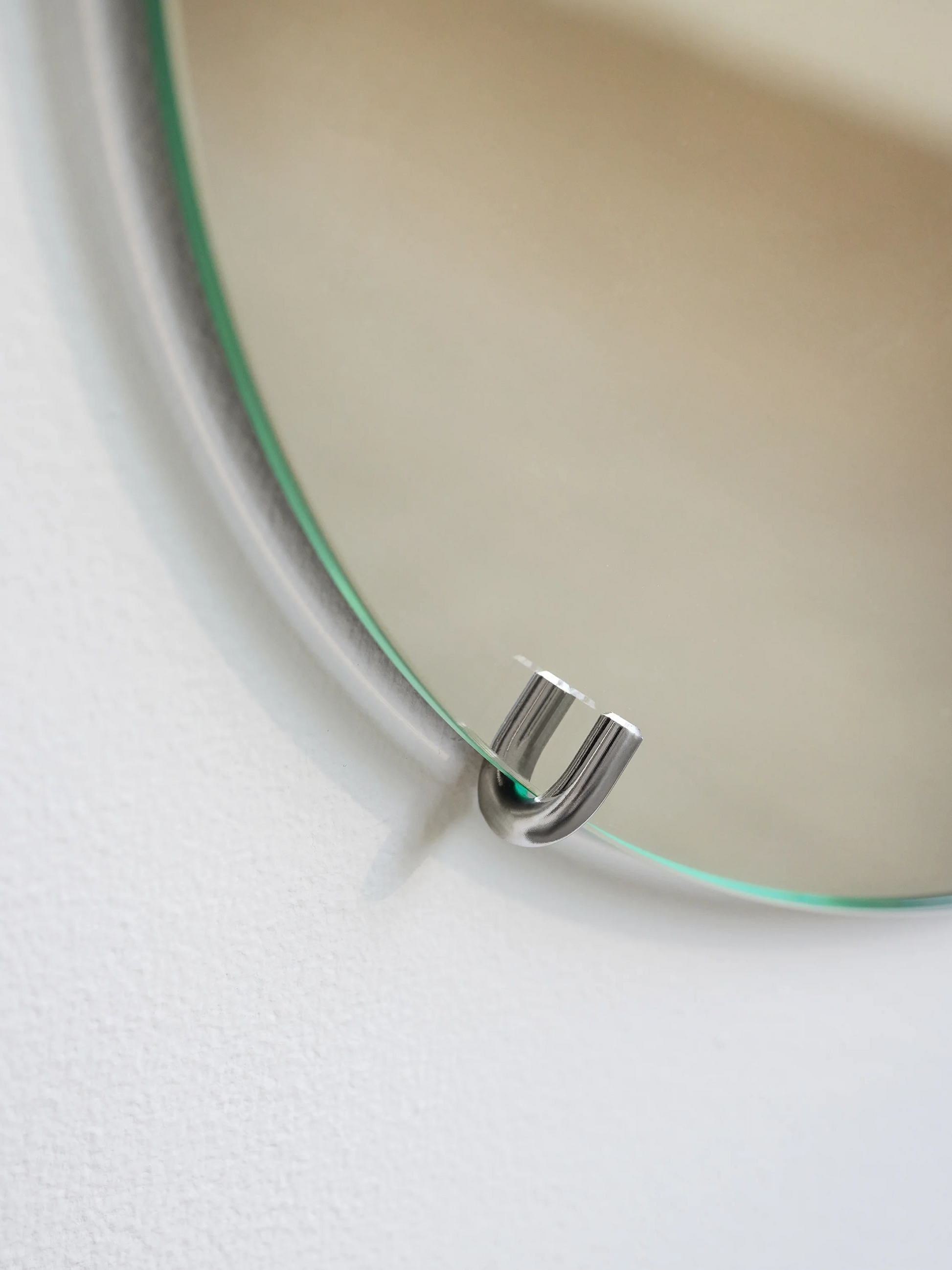 トール ウォール ミラーは、極力シンプルな構造で壁に取り付けられ、素材そのものがフォーカスされるように設計されています。軽量の金属ワイヤーフォームで支えられたこのミラーは、モダンにもクラシックにもマッチするミニマルでシンプルなデザインです。