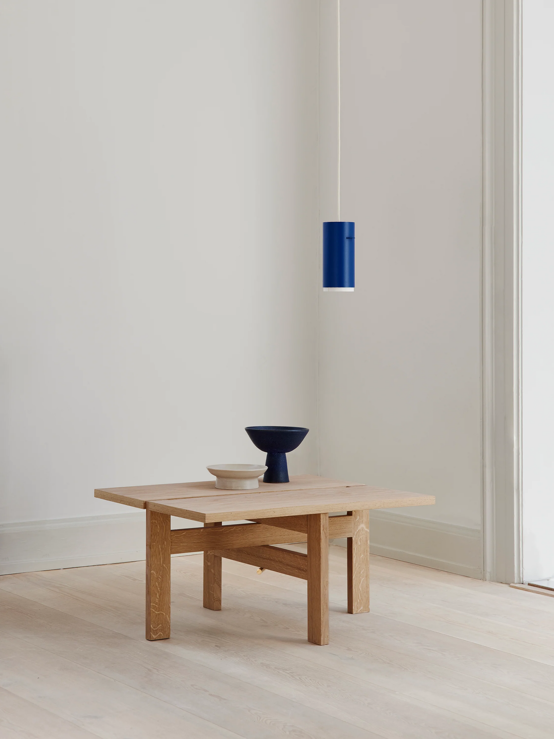 天板と連結金具、脚を交互に重ねていき、最後に真鍮のビスで個々の木製の部分を固定します。工具は必要ないため、ドライバーを探す必要もありません。