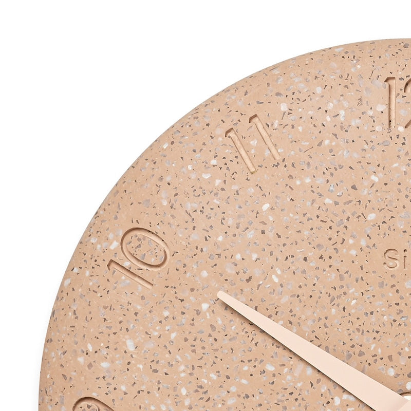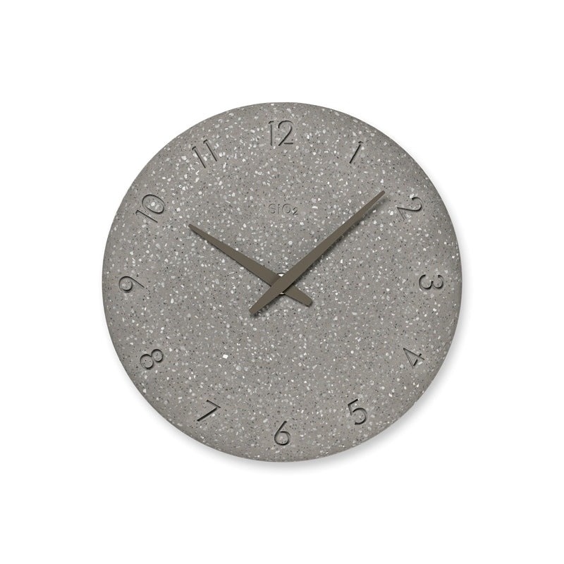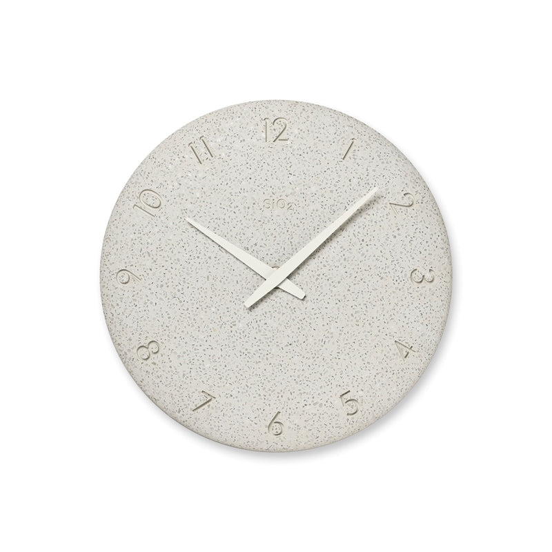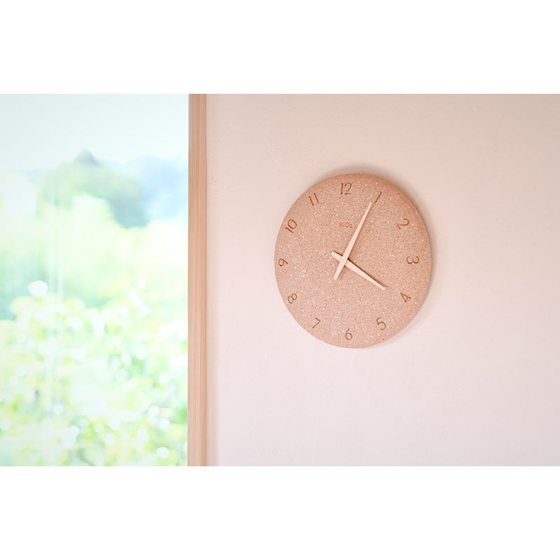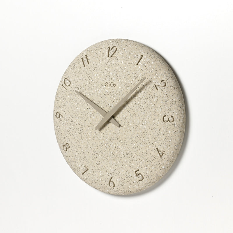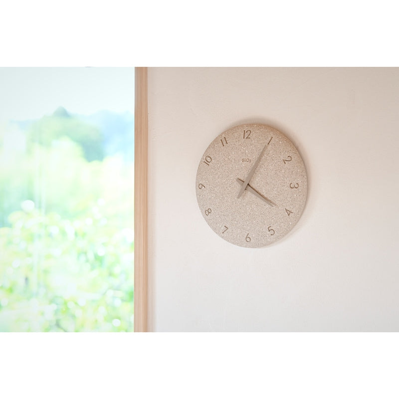 珪藻土の時計第3弾、建物の壁を仕上げる左官職の技法の一つ「洗い出し仕上げ」を用いて製作した時計です。