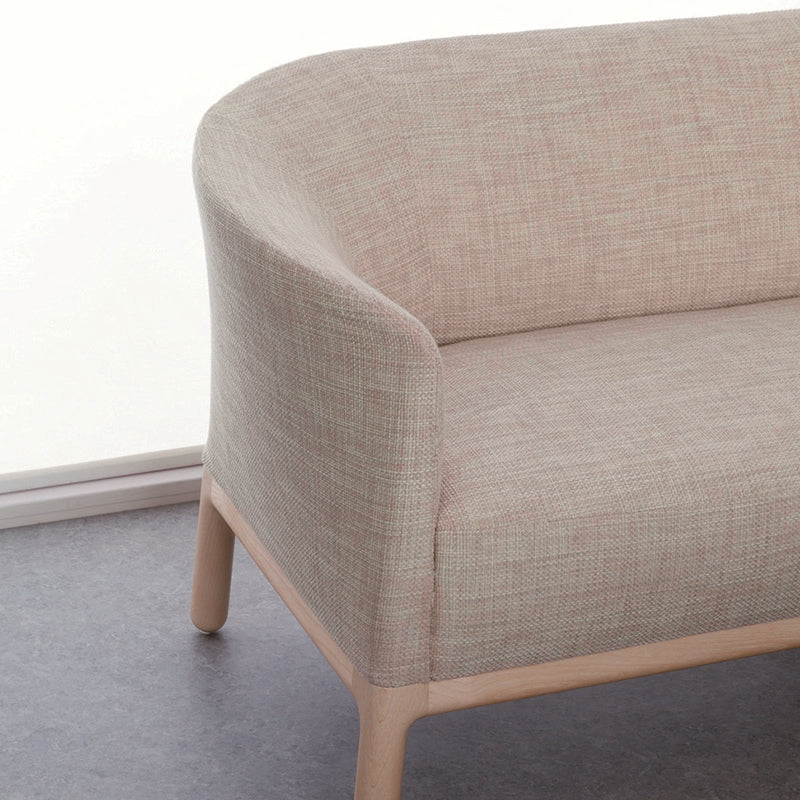 プードルのようにふっくらとしたシートに、同じ半径で刈り取られたスマートな脚を持つ愛らしいソファです。身体を包み込む優しい丸みと、アームから背へ続く滑らかなエッジの対比は張り職人の技術が光り、愛らしさの中に気品を感じさせる仕上がりです。