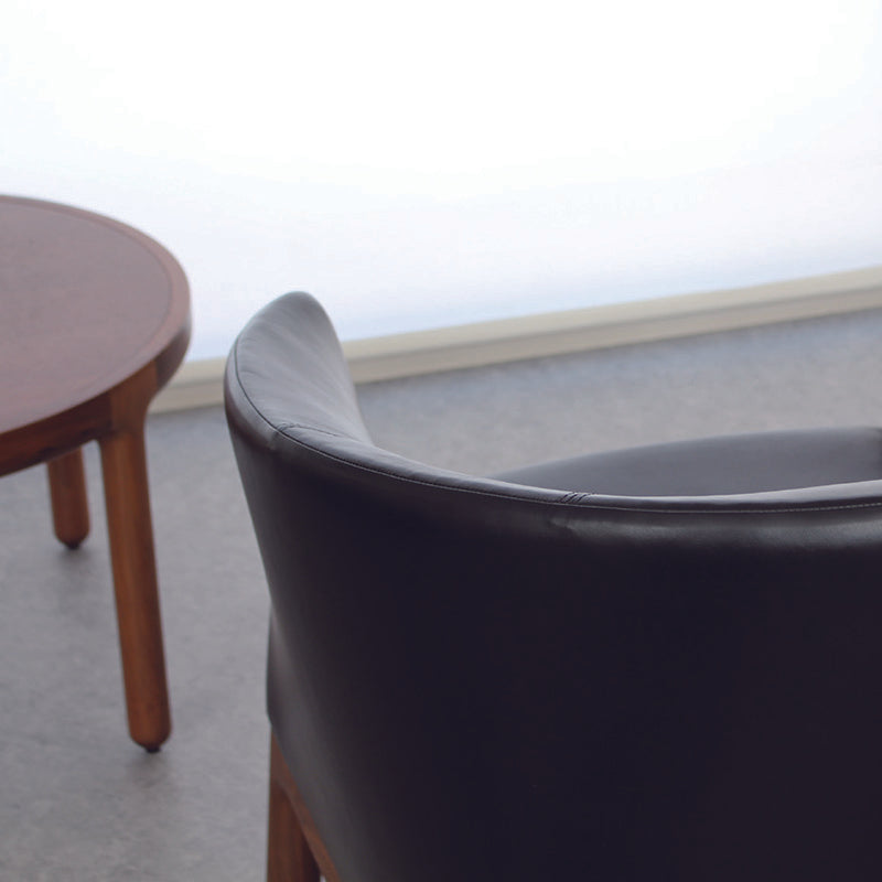 体全体を持たれかけたり、アームや背に腕を乗せたり、足を投げ出したりと、様々な姿勢で使えます。後ろから見ても美しい弧を描き、細部に至るまで丁寧に仕上げられています。