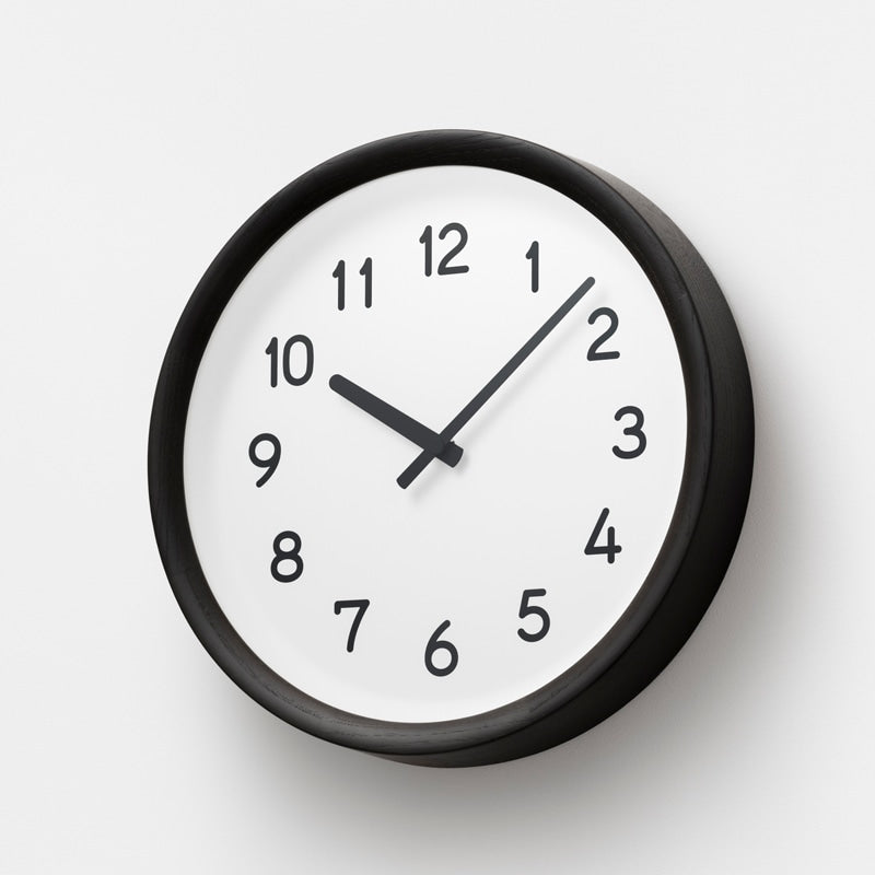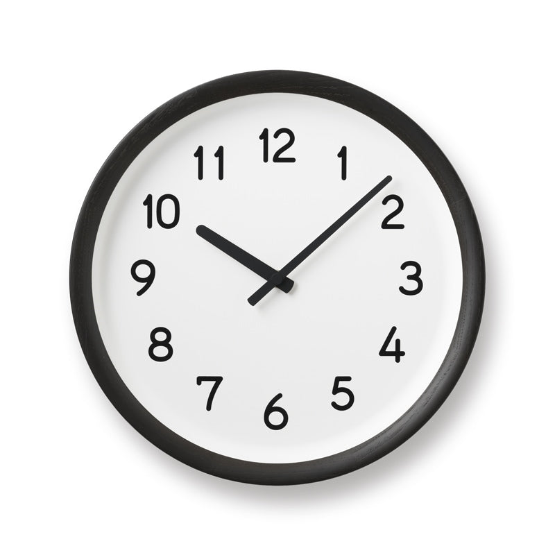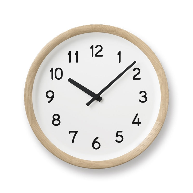 器の形から着想を得てデザインした壁掛け時計です。木枠に向けてなだらかに立ち上がる文字盤は余白が広く、斜めから見た際も木枠が針や指標を遮らず時計の見やすさを高めてくれています。器のような一体感のある形状は、針や指標を引き立てながら周囲の光を受けやわらかい陰影を作り出します。