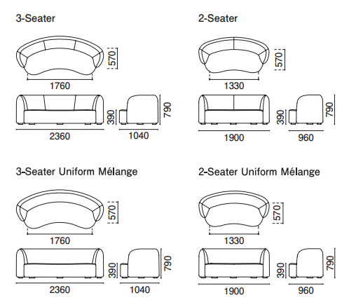 | 2-Seater:1900mm 3-Seater:2360mm |