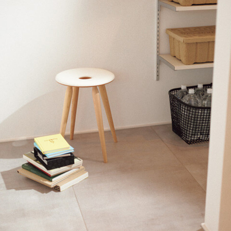 穴の中心に向かって傾斜がつけられており、とても座り心地の良いスツールです。