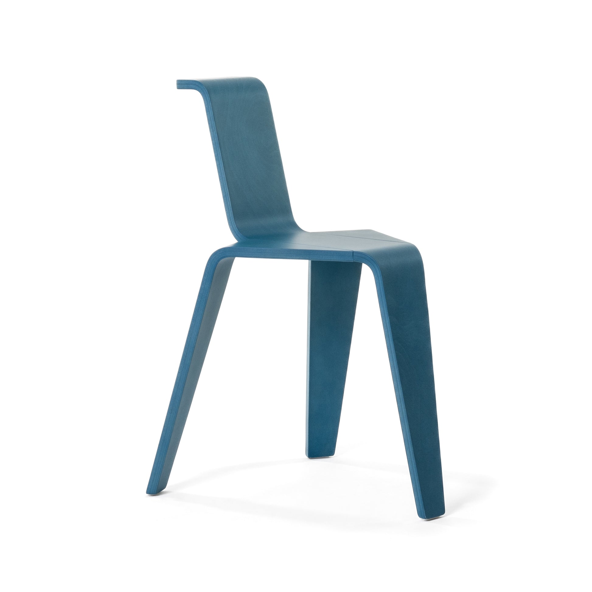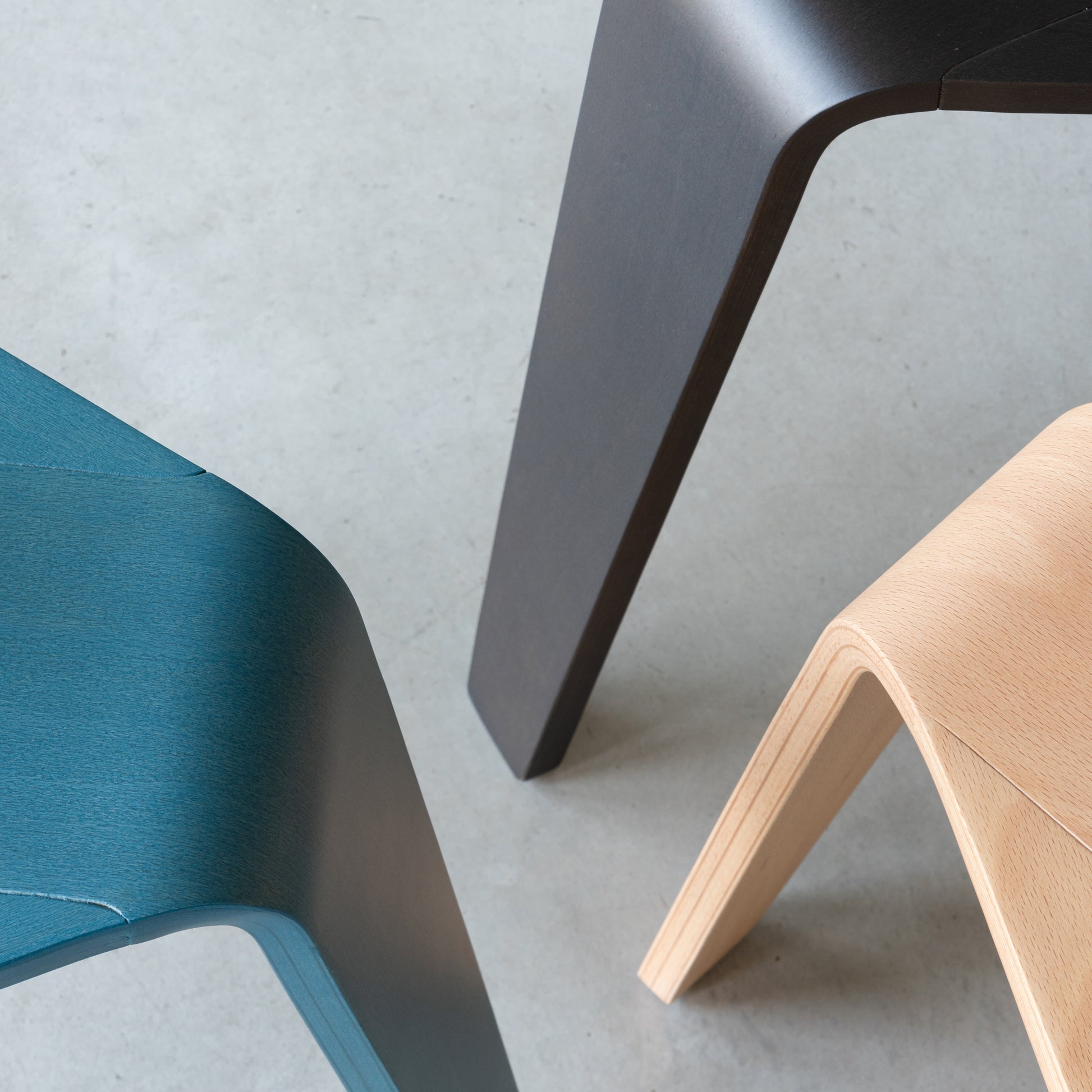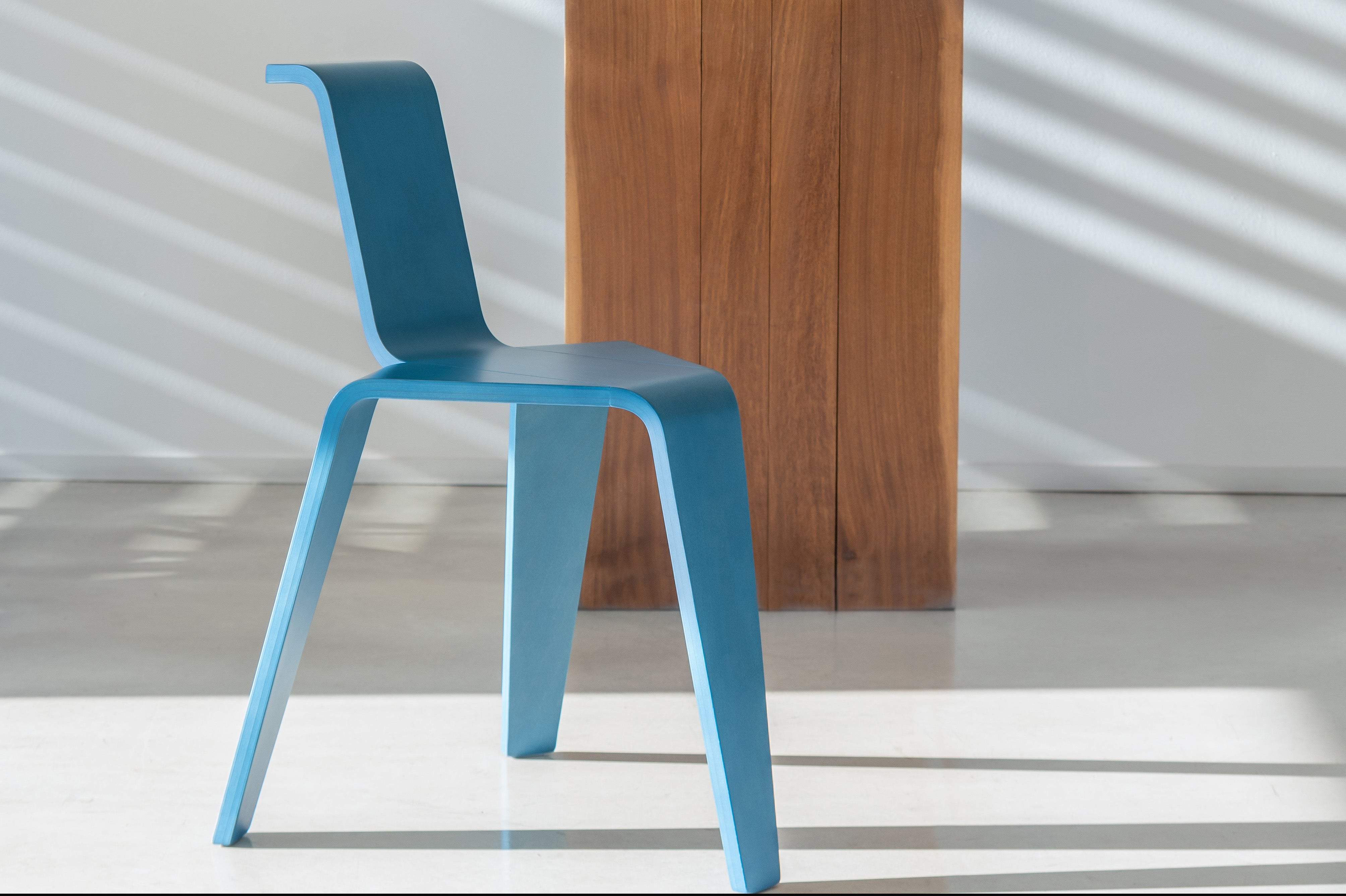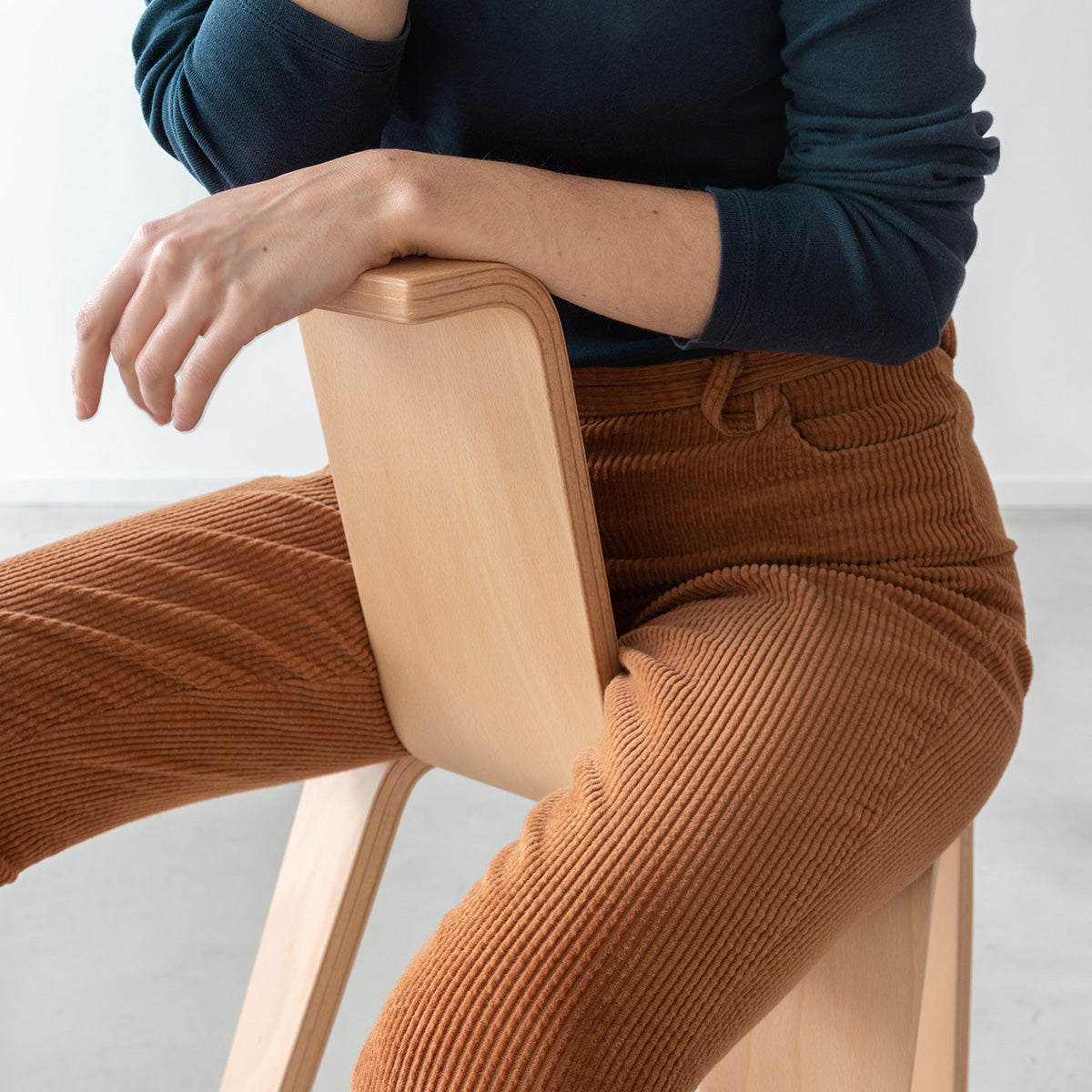 ビーチプライウッドの3パーツから構成され、中央部のパーツの切れ込みに、外側2つのパーツぴったりと収まることで、無駄のないスッキリとしたシルエットを実現。中央のパーツは背もたれのように上に向かって伸び、ハンドルやひじ掛けとしても機能します。