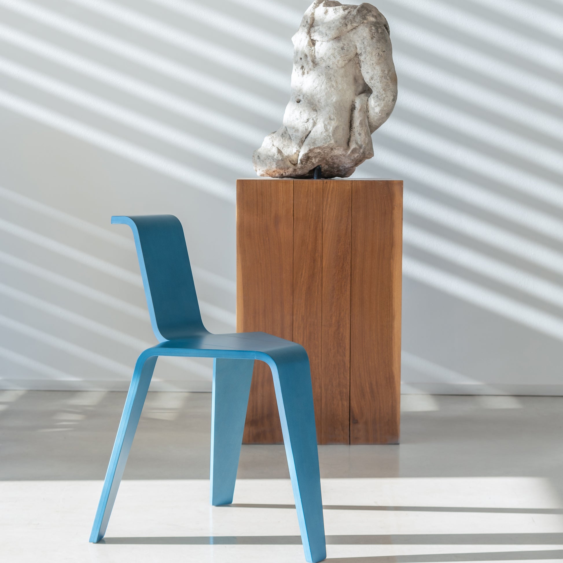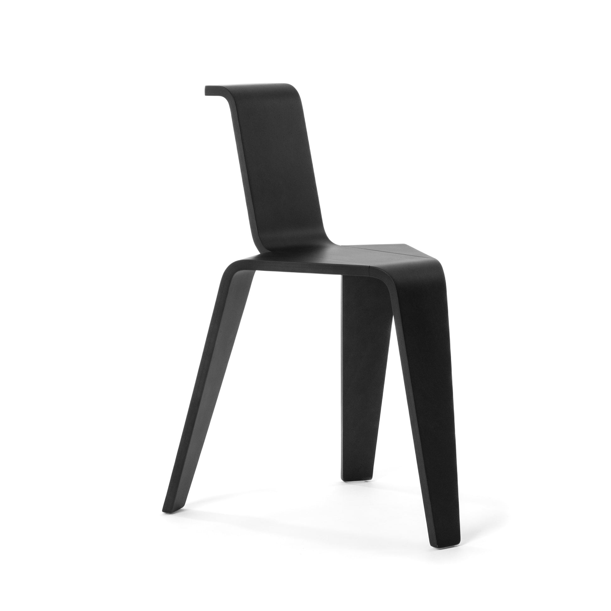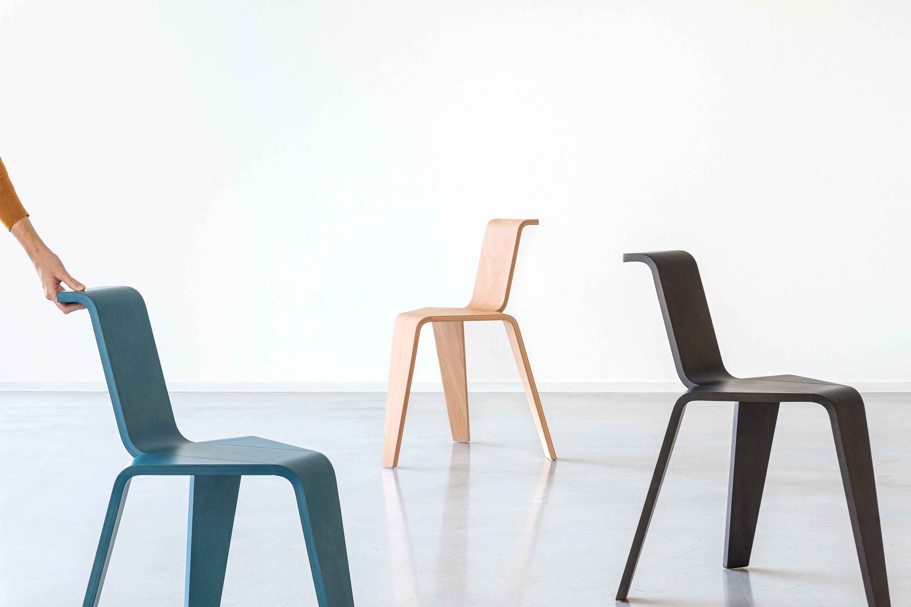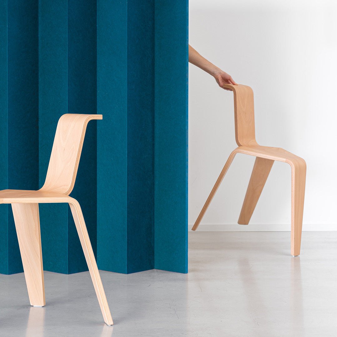 ビーチプライウッドの3パーツから構成され、中央部のパーツの切れ込みに、外側2つのパーツぴったりと収まることで、無駄のないスッキリとしたシルエットを実現。中央のパーツは背もたれのように上に向かって伸び、ハンドルやひじ掛けとしても機能します。
