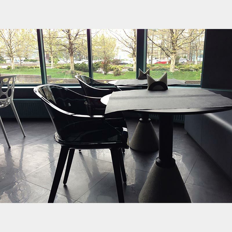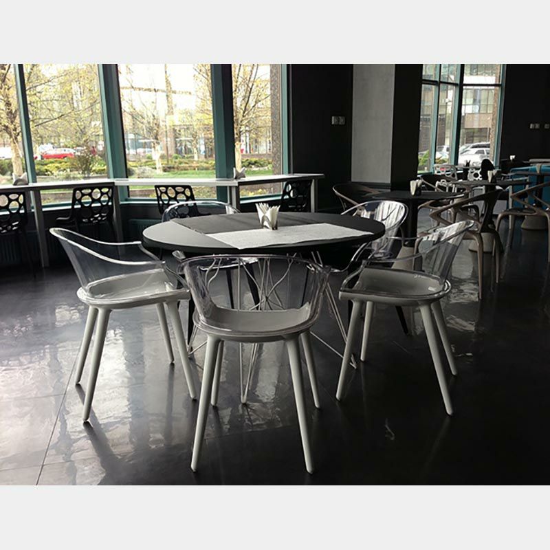 重厚な雰囲気を出しつつも、軽やかなスケルトンはカフェやレストランなどコントラクトにも最適。グリーンガードゴールドも認定した製品です。