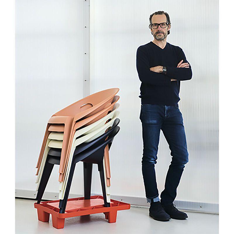 屋内でも屋外でも映えるデザイン。グルチッチデザインによるスタッキングアームチェア。植物の球根のようなフォルムでコンパクトながら安定感を兼備。 「手ごろな価格で用途が広く、循環経済にも配慮した椅子が作りたい」 Magisとグルチッチが再びタッグを組みました。わずか2.7㎏と平均的なプラスティックチェアの約半分の重さ(マジス調べ)。軽さの秘密は、機知に富んだデザインです。球根状のフォルムは構造的に強いだけでなく、非常に快適で、見た目にも美しいチェアです。
