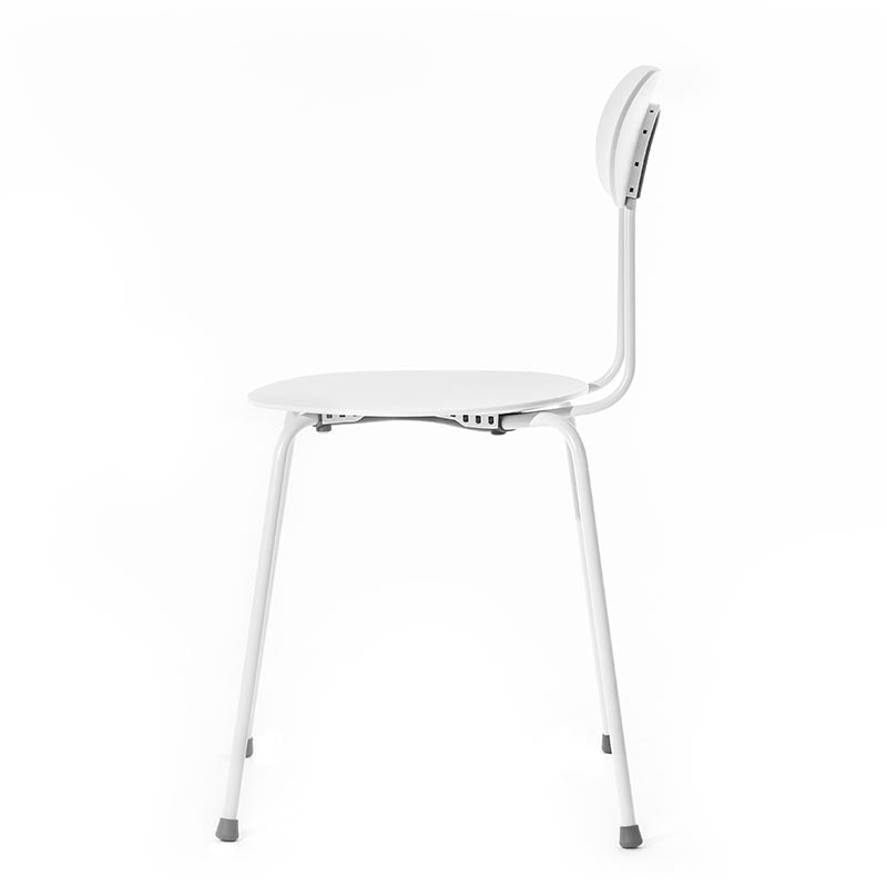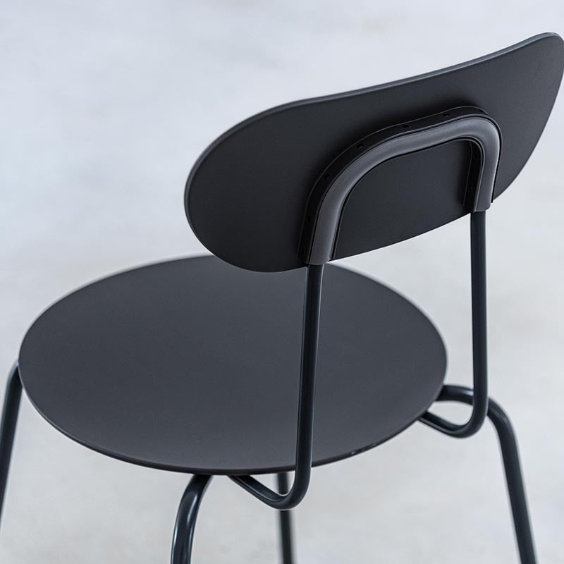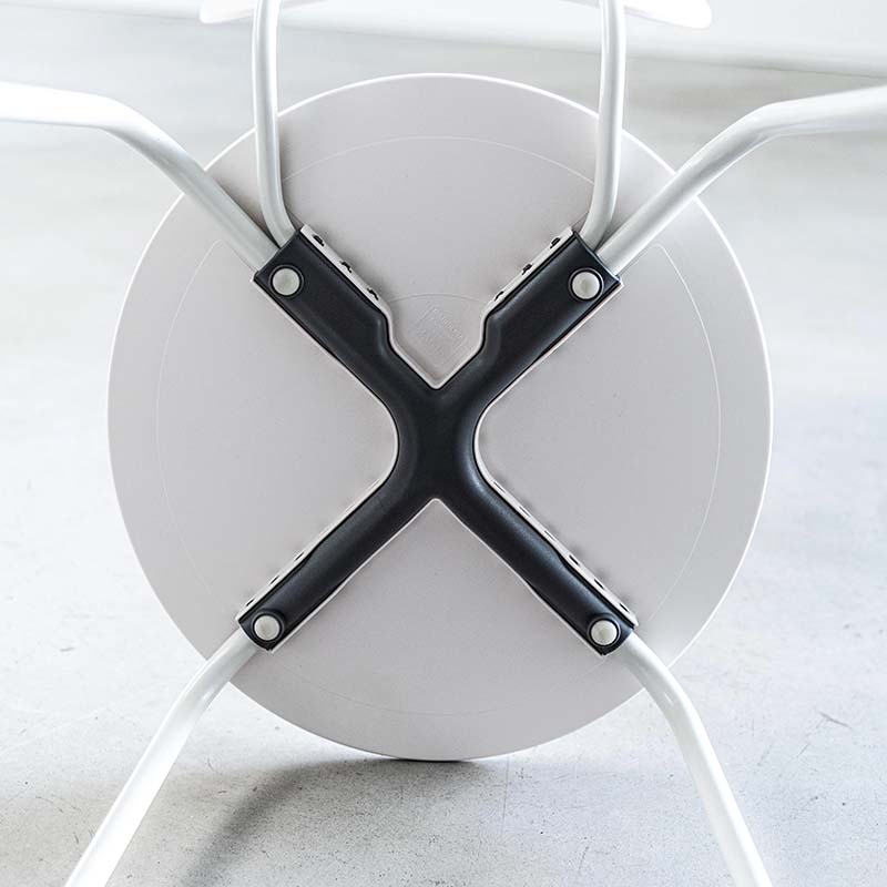 50年代スタイルを彷彿とさせる細身のフレームはそのままに、座面と背面背後に備え付けられたモジュールがフレームを支える設計となっている。座面の絶妙なカーブは座り心地も申し分ない。コンパクトな設計で12脚までスタッキングも可能。