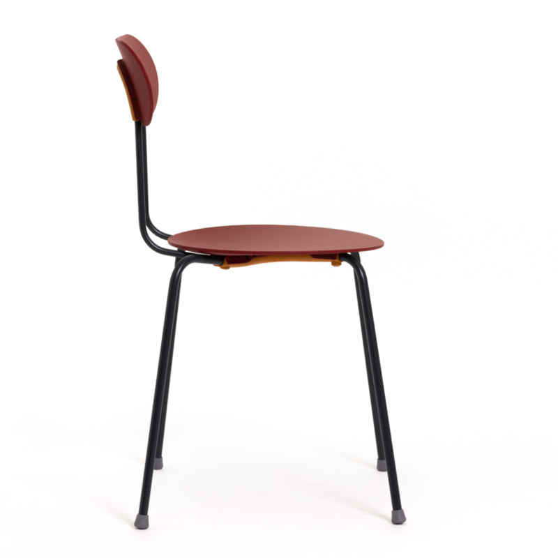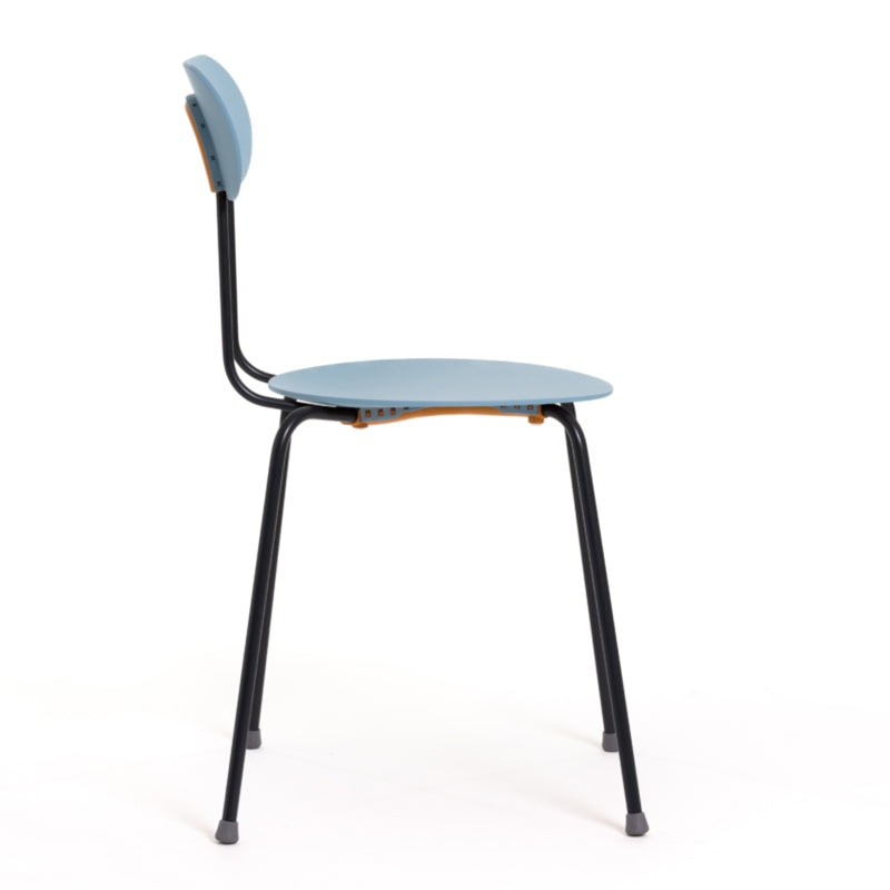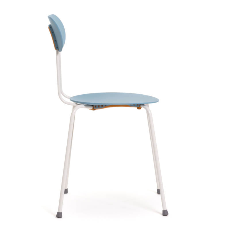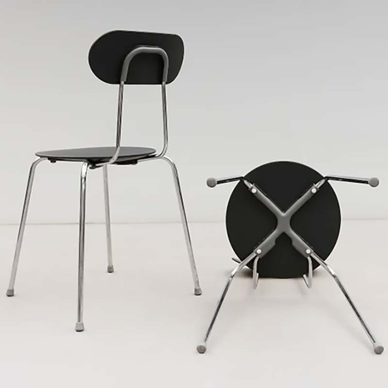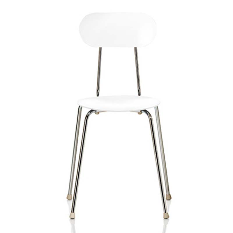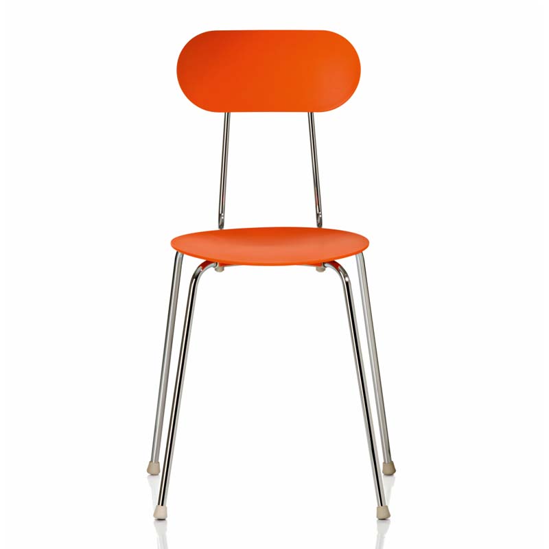 50年代スタイルを彷彿とさせる細身のフレームに、無駄のないフォルム、ゆるやかに広がるデザインが絶妙なチェア。座面の絶妙なカーブは座り心地も申し分ない。コンパクトな設計で12脚までスタッキングも可能。