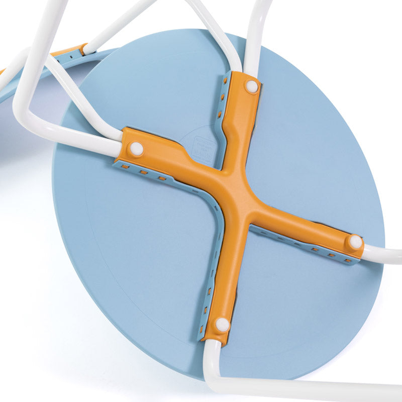 20周年記念の新バージョンは、柔らかい色合いのスカイ ブルーと深みのあるレッド ボルドー。接合部分の鮮やかなオレンジがアクセントとなった、イタリアらしい躍動感のある組み合わせ。脚はホワイトとブラックからセレクトいただけます。