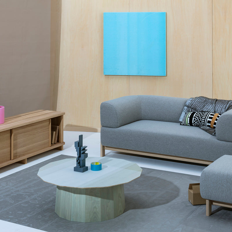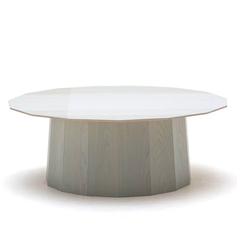 工芸技術の伝統と小径木の特性に迫った多角形のテーブルです。半透明の色と柄をグラフィックアクセントとしてデザインに盛り込み、伝統的な工芸技術にコンテンポラリーなデザインを重ねています。