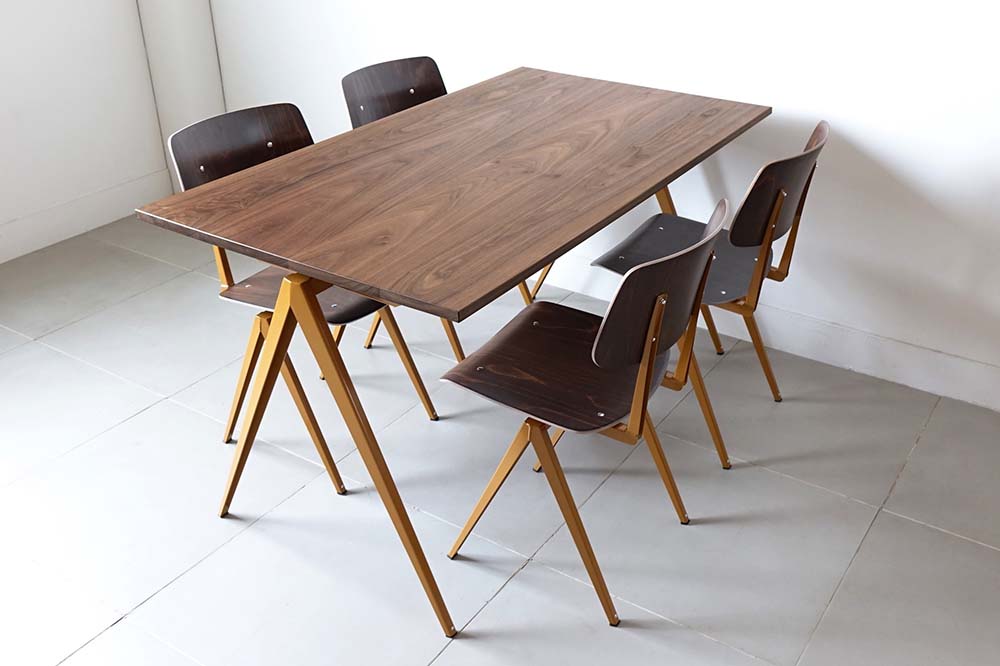 インダストリアルチェア「モデルS.16チェア」とのマッチングデザインとして製作されたダイニングテーブル「モデルTD.4テーブル」。