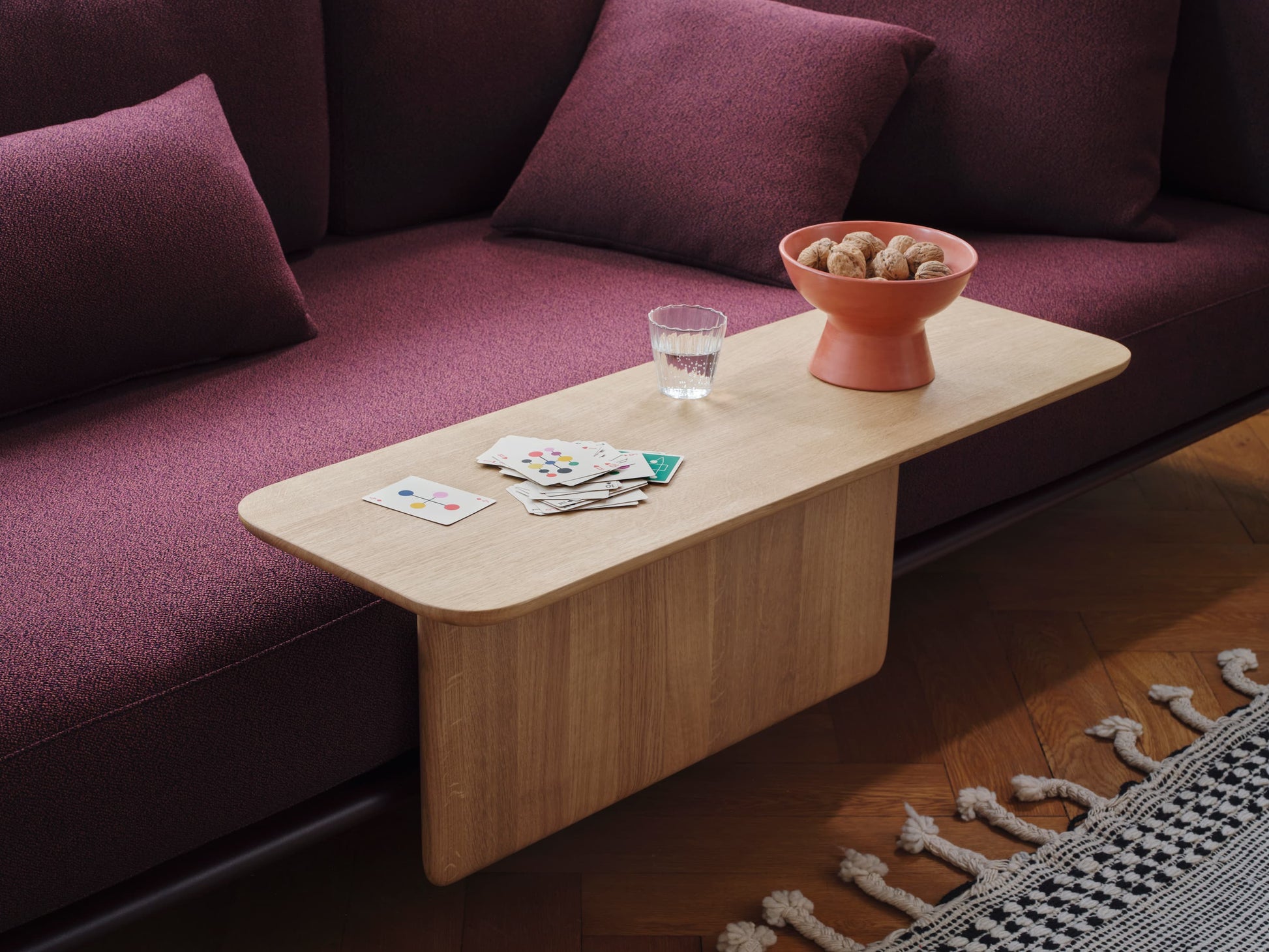 プラットフォームは、バックレストやサイドに使えるパネルや、取り外し自由なテーブルを、四方どこにでも設置できるようデザインされています。独創的なクリックメカニズムにより、パネルやテーブルは自由に配置でき、いつでも簡単に取り付け、取り外し、再配置できます。無限の組み合わせやセッティングが可能なソファシステムです。