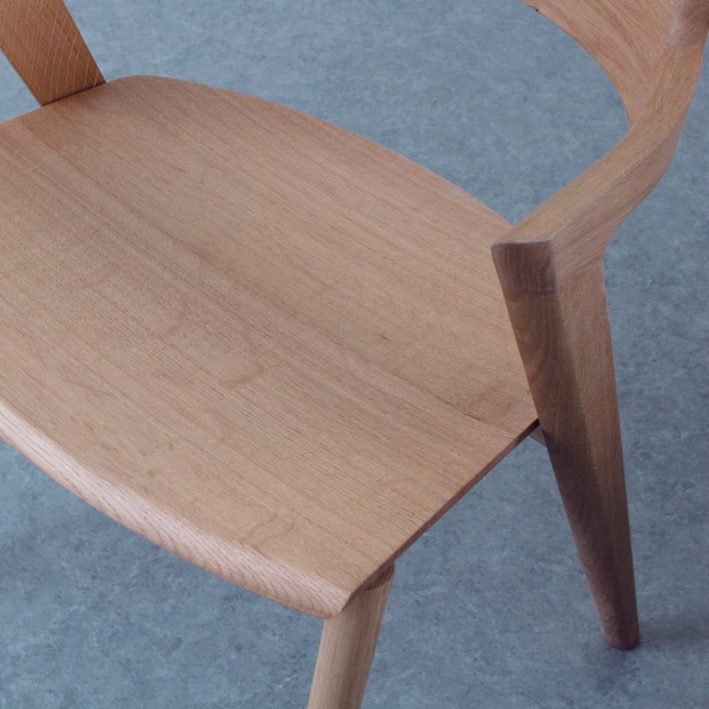 セミアームの笠木は後脚からアーム、背面へと曲面が滑らかに繋がります。アームから背面の内側は大きく曲面が取られており、腕や背への当たりが優しく感じられます。