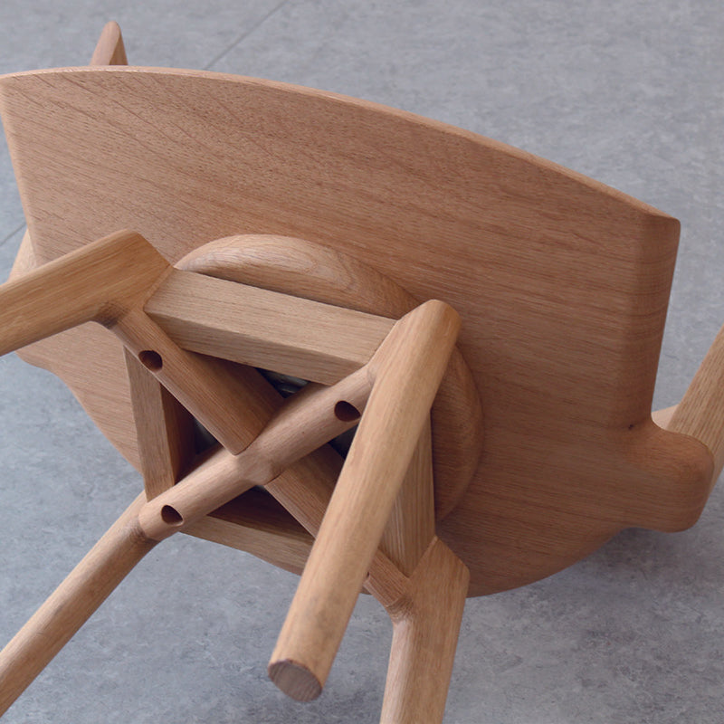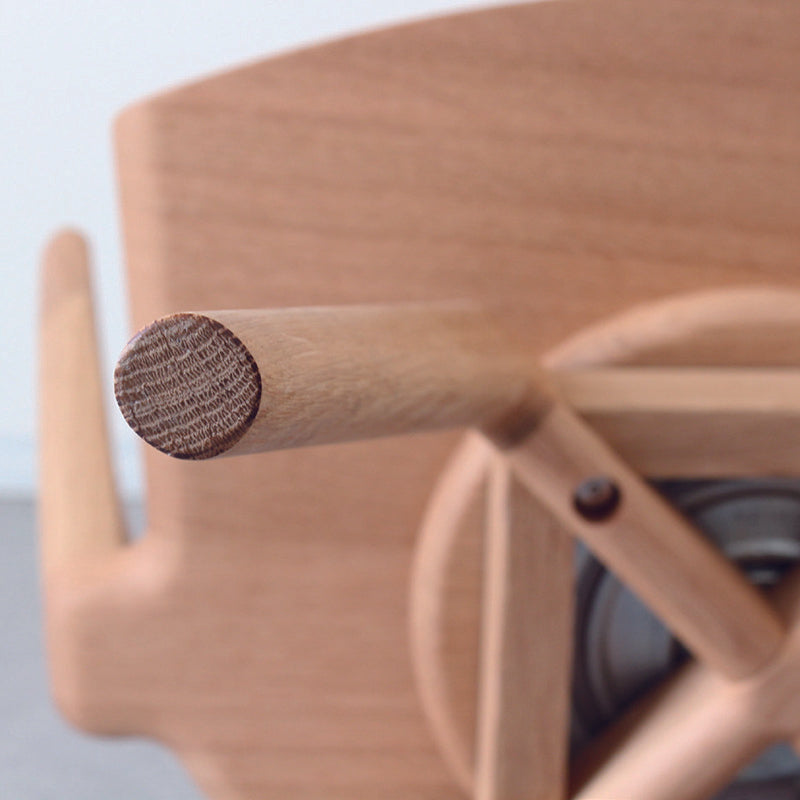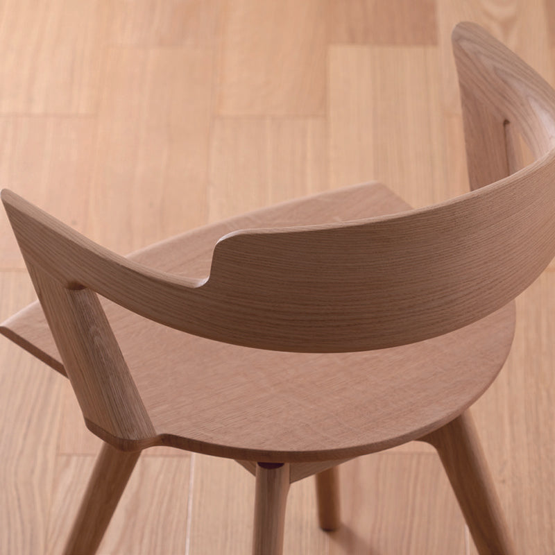 「VIOLA(ヴィオラ)」は、笠木と呼ばれるの背もたれ部分がヴィオラのように美しい孤を描く椅子です。 イストクが得意とする曲木技術を用いてアームから背までが一体で曲げられ、継ぎ目なく木目がつながります。 脚から座面までハープと同様のフォルムのため、ハープシリーズと並べると滑らかな音階が広がります。